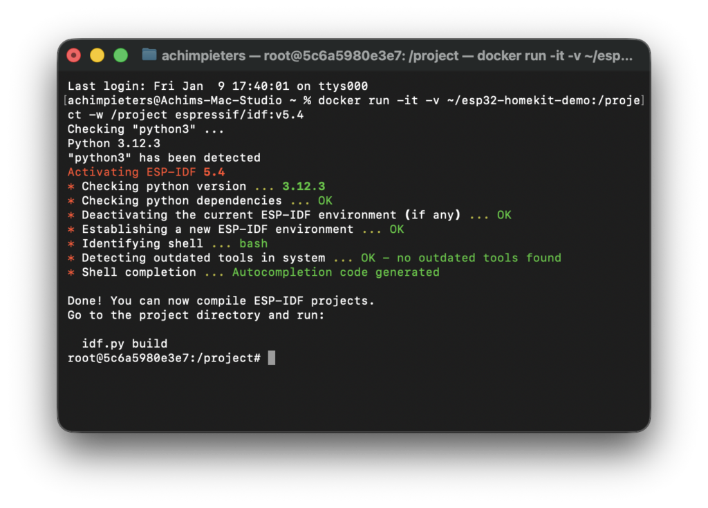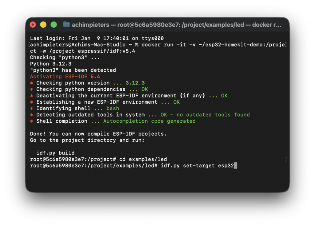 Install the ESP32 development environment (ESP-IDF) using Docker
