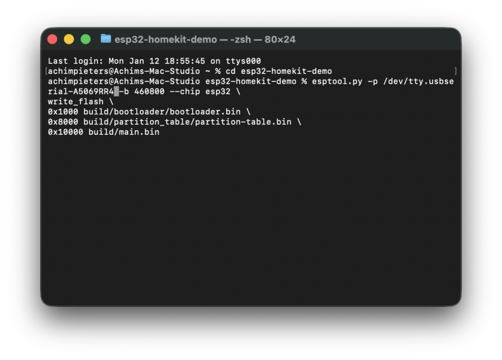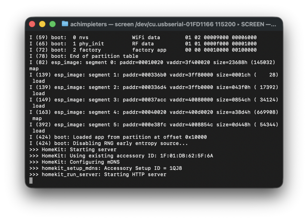 At this point, the ESP32 is waiting for the Home app. Keep it open and you will see what’s happening on your ESP.
